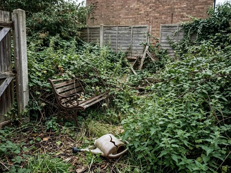 - Heavily overgrown garden: bramble, nettle, ivy and self-seeded sycamore returned the plot to wild. Common after a few years of vacant tenancy or a probate property.